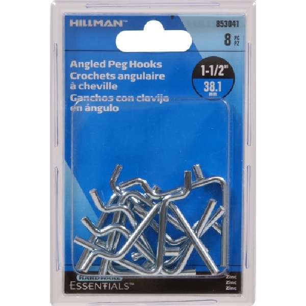 Hardware Essentials angled hook provides additional storage when used with a 1/8 in or 1/4 in peg board. Great for organizing your garage or workbench. Made of a durable steel material.