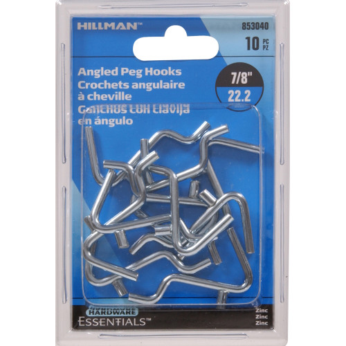 Hardware Essentials angled hook provides additional storage when used with a 1/8 or 1/4 in peg board. Great for organizing your garage or workbench. Made of a durable steel material.